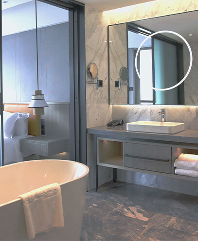 Our rooms redefine luxury with smart technology seamlessly integrated into your experience. Motion sensors delicately respond to your presence, illuminating the room with a gentle glow as you enter. Navigate your surroundings effortlessly with a bed control panel that gracefully operates electric curtains, allowing you to customize your ambiance at the touch of a button.